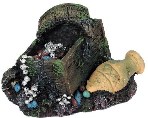 Cette malle aux trésor en résine apportera un aspect aventurier à votre aquarium. Elle serivra de cachette aux poissons de votre aquarium. Certains poissons se reproduisent sur substrat caché et ont besoin de ce type de décor pour la reproduction en aquarium.