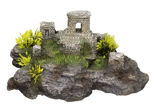 Décor pour Aquarium en Polyrésine Pierre Slate Mousse 25,5 x 15,5 x 20 cm. Décoration pour aquarium - Avec plantes Temple asiatique - 18,5 x 14,2 x 17